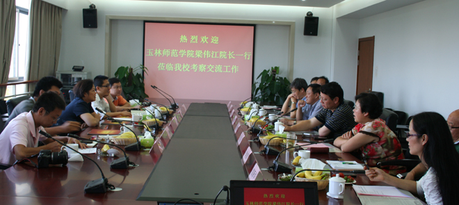 7月24日,玉林师范学院党委副书记、校长梁伟江率领该校学工处、美术设计学院、体育学院、计算机学院等相关部门负责人一行5人到我校参观交流学习。我校党委副书记孙勇、副校长董建华陪同参观了轨道交通实验室、烹饪实验室及校园环境,并对我校的专业实验室建设、校园建设作了介绍。