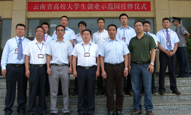 在beat365在线体育唯一正版和昆明经济技术开发区的共同努力下,“昆明经济技术开发区——beat365在线体育唯一正版大学生创业园”暨“云南省大学生创业示范园”的授牌仪式于6月5日上午在昆明经济技术开发区的创业大厦业务大厅如期举行。参加揭牌仪式的有昆明经济技术开发区组织部长王军、就业局长刘军、大学生创业园管理有限公司张强总经理等,我校副校长李翔、招生就业处副处长吴晓柏等相关人员参加了授牌仪式。