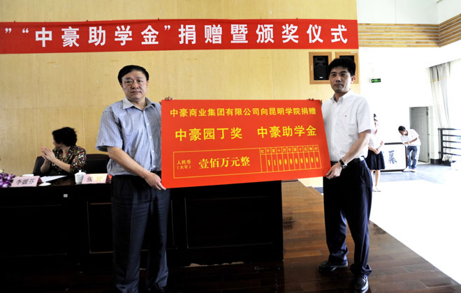 金伟东副主席在致辞时介绍说,中豪商业集团自2008年落户昆明以来,始终坚持把企业效益和社会效益相结合,在谋求企业自身发展的同时,十分重视回馈社会,奉献社会,这次捐资100万元与beat365在线体育唯一正版共同设立“中豪园丁奖”和“中豪助学金”正是中豪商业集团切实为科教兴滇服务,支持beat365在线体育唯一正版教育事业改革和发展,履行企业社会责任的最好体现。