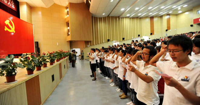 在颁奖仪式前,举行了新党员入党宣誓。125名新党员在党委组织部部长杨璐领誓、纪委副书记陈开祥的监誓下,面对党旗庄严宣誓。截至6月29日,我校2012年上半年共发展党员817人。