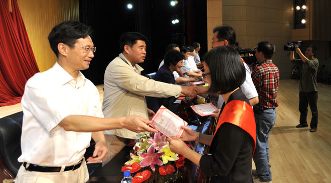会上,李副书记宣读了学校党委表彰创先争优先进基层党组织、优秀共产党员和优秀党务工作者的决定。在创先争优活动中取得优秀成绩的6个先进党总支、20个先进党支部、119名优秀共产党员和40名优秀党务工作者受到表彰。与会校领导分别为获奖集体和个人代表颁奖。