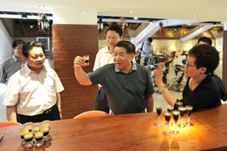参观结束后,来宾与我校领导在旅游学院酒吧实验室进行座谈。