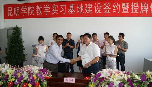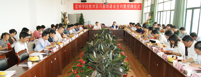 会上,罗明东副校长代表学校与20家教学实习单位签署了合作协议,并与熊副校长一同为签约单位授牌。昆明丰泽源植物园有限公司总经理张棨代表签约单位讲话。招生就业处包兴处长就我校高职本专科招生政策及毕业生就业有关情况作了介绍。农学院银立新副院长介绍了我校荷兰BTEC教育培训中心项目及生源组织情况。