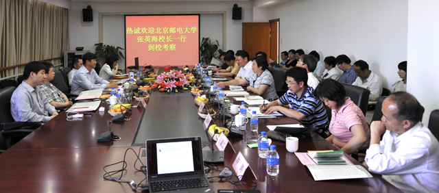2011年12月,熊晶副校长带队到北京邮电大学考察并商谈合作事项,经过两校的多次沟通,商定了校际合作协议。5月3日~4日,北京邮电大学张英海副校长,科技处刘杰处长,计算机学院高志鹏、孙岩和校务办公室柳旭老师一行5人到学校考察并签署校际合作协议。熊晶副校长全程陪同并热情接待了张副校长一行。