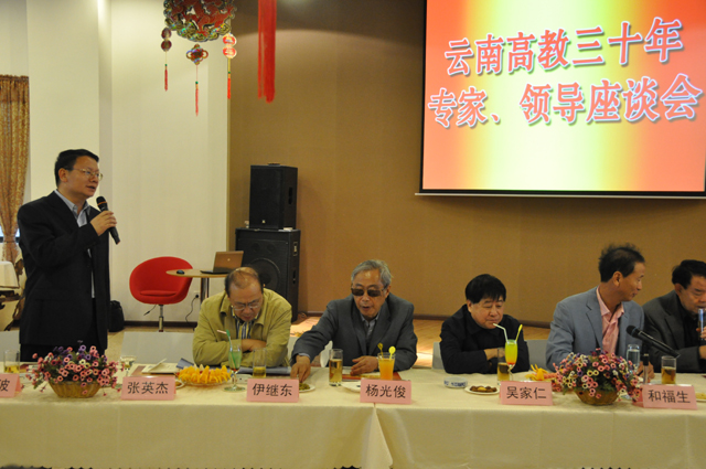 4月26日下午,云南省高等教育学会成立三十年专家、领导座谈会在我校举办。高教学会会长和福生、秘书长董云川及海松、吴家仁、伊继东、李存俊等高教学会老专家、老领导,学校陈世波校长、罗明东副校长、李翔副校长出席座谈会。