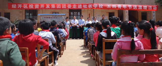 为进一步贯彻落实省第九次党代会精神,深入开展“四群教育”,积极响应省委组织部、团省委、省高校工委关于组织共产党员、共青团员进社区开展志愿为民服务活动的号召,4月27日下午,校团委联合经开区投资开发(集团)有限公司团委到经开区海子中心学校清水分校,开展了“走进社区学校五四青年节送温暖”活动。校团委书记何昊宸、各院系团总支书记代表及我校青年志愿者参加了本次活动。