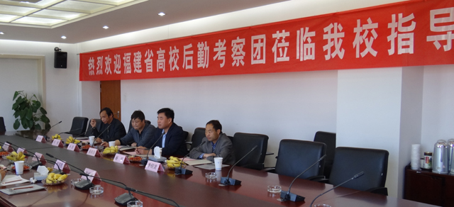4月14日,福州师范学院副校长王炳庆、后勤处处长王振裕,福建商业高等专科学校副校长柯芸笙、后勤处处长郭海云、福建信息学院后勤处处长甘显平,中央财经大学后勤处处长、后勤集团总经理孙殿明等一行8人来我校进行考察调研。张寿国副校长,校办主任杨跃,后勤集团总经理冯坚、党总支书记杨平、副总经理曹全科等同志出席了会议。