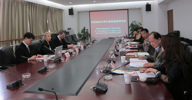 美国协和大学-欧文分校的副院长Mary Scott博士介绍了协和大学-欧文分校的情况。协和大学欧文分校是一所美国私立的文科大学,建立于1976年,并在由美国西部学校与学院协会认可的下属六个学院中提供本科和研究生学位课程。协和大学欧文分校被美国新闻媒体与世界媒体报道排名为美国西部最佳的地区类文科院校,并被誉为“其中的最具价值学校”。会谈中,Mary Scott博士和Eugene P. Kim博士均十分赞同李副校长提出的合作思路,他们表示十分期待我校派送的教师到协和大学欧文分校开展学术交流。