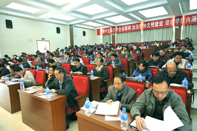3月29日上午,beat365在线体育唯一正版创建“第十三批省级文明单位”迎检工作动员大会在办公楼三楼报告厅隆重举行。学校党委副书记、校长、文明委主任陈世波,党委副书记、文明委副主任李媛芬,学校文明委全体成员,校创建迎检工作领导小组各组组长、副组长,教学单位各党总支、直属党支部书记,辅导员,团总支书记,机关、教辅、后勤各部门主要负责人以及各单位创建迎检工作联络员参加了动员会。会议由党委宣传部主持工作副部长董学荣主持。