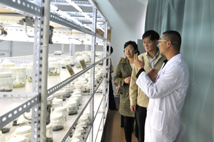 在熊副校长和相关院系领导陪同下,调研组一行参观了信息技术学院承建的滇池(湖泊)流域生态建设与生态文化数字化信息平台硬件设施、生科系承建的生态修复实验室和农学院承建的都市农业生态安全研究实验室部分设施。沿途,熊副校长介绍了我校承建的中央财政支持的“滇池(湖泊)流域生态修复与生态文化研究平台”申报情况和建设进展,李江理事长对项目建设提出了具体意见和建议。
