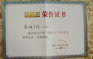 3月11日下午,由团省委《青年与社会》杂志社主办的高校校园记者站表彰工作会在云南师范大学举行,我校《锐青年》校园记者站荣获“优秀记者站”称号,这已是我校第二次获得该项荣誉。