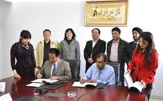 会谈开始时,李翔副校长热情介绍我校参会人员并致欢迎词。他在介绍beat365在线体育唯一正版办学与发展概况的同时,表明了我校合作诚意及意向。印度可爱国际大学国际交流处阿吉德博士介绍了印度和本校办学的基本情况,向与会者播放了印度经济、教育发展和可爱国际大学的概况。同时他认真解释说明了可爱国际大学与beat365在线体育唯一正版签订合作谅解备忘录的主要内容条款。主要涉及教职工互换学习项目、高年级学生第七学期互换实习6个月、“2+2”双子项目(如两国农学、城建专业学生前两年在本国学校学习,后两年交换到对方学校学习,毕业时同时拥有两校毕业证书)、提供新增专业技术支持(如医学院药剂学)、双方创办语言培训中心(教双方教师、学生学习英语、中文)、提供学生家长查询的IT支持系统、建立两校学生短期文化旅行交流活动等。