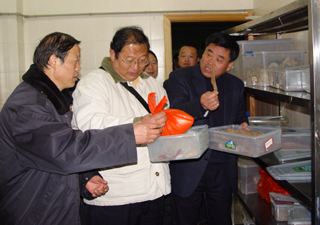 考评组一行先检查了我校生科系化学危险物品保管室,对化学危险物品的购买、保管、安全防范等问题进行了详细了解;在润泽苑食堂,检查了操作间、储物间和仓库,与在食堂巡逻执勤的学生治安服务队亲切交谈;在润泽苑宿舍,检查了宿管的门卫登记制度;在保卫处会议室,查阅了学校创建平安校园的工作台帐。