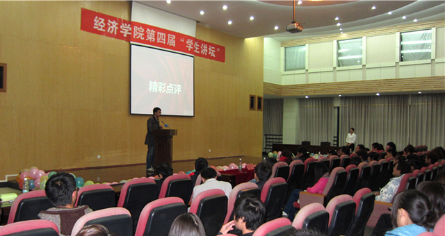 11月30日晚经济学院第四届“学生讲坛”决赛在惟行楼1501隆重举行。本届比赛共有来自9个院系的22位选手报名参加了比赛。经过层层选拔最终有八位选手脱颖而出进入决赛。经济学院党总支书记李跃波老师,团总支书记周立君老师,beat365在线体育唯一正版校学生会副主席木新宇同学以及各兄弟院系的学生会主席作为本次比赛的评委。