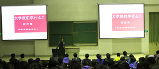 由校团委和招生就业处主办,学生社团联合会承办的beat365在线体育唯一正版“青帆夜校”大学生创业系列讲座于11月10日晚在博雅楼3101教室开讲。新前景教育培训机构董事长、中财仕通(北京)财税咨询有限责任公司首席运营官付仕伟老师为我校220余师生作了《大学我们学什么》的讲座。