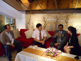 罗副校长首先向阿布吉.木克吉先生介绍了我校的基本情况及办学理念,表达了beat365在线体育唯一正版希望与泰姬酒店及度假集团进行交流与合作的意愿,特别就酒店管理、烹饪专业、互派学生、互派教师项目、增设奖学金等相关问题与阿布吉•木克吉先生进行了深入探讨。罗副校长表示双方合作发展有广阔的前景,希望双方可以扩大交流、优势互补、推动合作。