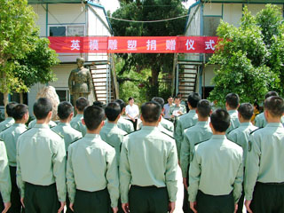 昆明陆军学院副院长张立波大校代表昆明陆军学院对我校领导、老师的到来表示衷心的感谢。他在捐赠仪式上表示,雷锋塑像的落成是军地双方开展国防教育文化建设的有益探索,他们将在今后的合作中,发扬解放军“高尚、健康、活泼和革命英雄主义”的军营文化与优良作风,进一步开启军地双方的交流与合作。