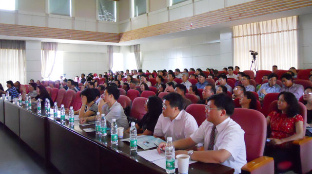 在讲到以评估为动力推动新建院校教学质量不断提升时,李志宏研究员分析了高等教育的发展趋势,谈到新建院校的办学特点、新建本科院校发展中面临的困难和问题,并提出抓住重点,努力提升新建本科院校办学水平和教育质量的具体路径:1.正确定位,牢牢把握学校的服务面向;2.建立与新时期相适应的质量观;3.以培养实践能力和创新精神为核心,深化教学改革;4.以质量工程为抓手大力推进教学建设。演讲以“让我们共同努力,为中国高等教育建康发展做出贡献!”为结束语,精彩的演讲赢得了全体在座师生热烈掌声。