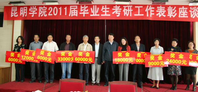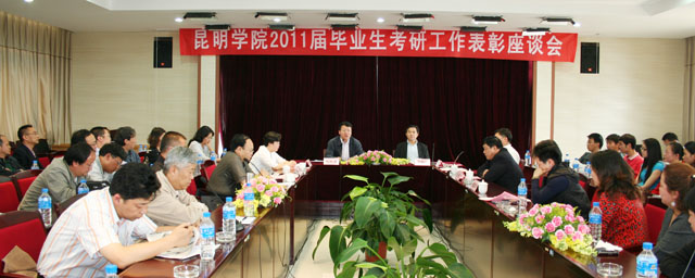 5月26日下午,学校在行政办公楼502会议室举行2011届毕业生考研工作表彰座谈会。学校在校领导,各教学单位主要负责人及相关人员,宣传部、后勤处、校图书馆主要负责人,教务处领导及相关科室负责人和考研上线的全体同学参加了会议。会议由分管教学工作的罗明东副校长主持。