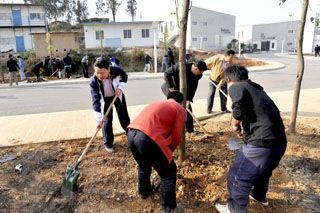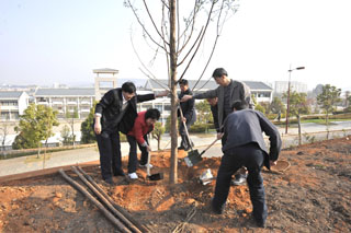 此次校园植树活动受到大家的积极拥护与支持,活动中,学院党政领导班子成员及各部处室负责人亲临现场,率先垂范,与大家一起积极参加植树义务劳动。为保证树木成活率,大家在农学院专业老师的指导下,按植树技术规范进行认真细致地挖塘、整地、施肥、栽树。校园的山坡上、荒地里、道路旁,大家热情高涨、争先恐后、团结协作、气氛热烈、场面感人,先后共植香樟树、小叶榕、水杉、黄金榕等60棵树苗,这些树苗与周边乔木、草木、灌木、草坪融为一体,绿荫葱茏、山石叠翠,为新校园增加了一道别具一格的优美景观,也是学院领导干部和机关职工为优化育人环境做的一件实事。
