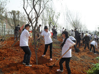 根据共青团beat365在线体育唯一正版关于开展“青春给力十二五,志愿服务新昆明”学雷锋活动月的通知精神,结合学习杨善洲,美化新校园,创先争优系列活动,3月12日上午农学院师生代表等70余人在音乐楼南大门边绿化带开展植树活动,种植了垂丝海棠等树木70余株。 本次活动,意在培养新一代大学生高尚的道德情操和崇高的思想境界,展现当代大学生的良好形象,养成新一代大学生雷锋精神,提高大学生对大自然的热爱,增强环境保护意识,生态意识。通过绿化环境,美化校园,让我们的生活更美好。