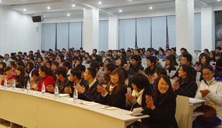 接着,蔡老师从“德商•智商•情商”三个角度分析了现实生活中人们应该如何处理这三者之间的关系,并提出了一个三角形定理,即德商是基石,智商是材料,情商是技术;人生成功的实现就是修养德商、开发智商、锻造情商,一个成功的人需要具备忠孝、仁爱、诚信、勤俭、宽容、责任六种素质。蔡老师的讲座情感真挚、发人深思、语言诙谐幽默,整场讲座历时三小时,高潮迭起,掌声不断。