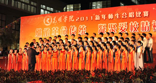 在新年将至、辞旧迎新之际,为丰富校园文化生活,凝聚全院力量,传承革命传统,凝聚爱校精神,展现师生风采,充分肯定成绩,不断推进我院各项工作,由我院团委、工会联合主办的“2011年新年师生合唱比赛及颁奖晚会”于12月30日,31日晚在聂耳广场如期举行。