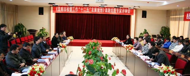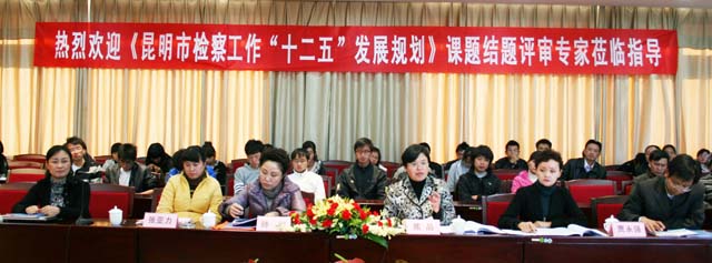 倪慧芳组长最后也发表了自己对《发展规划》的编制观点和建议,并代表专家组宣读了《昆明市检察工作“十二五”发展规划》专家组评审意见。她说:第一、规划文本基本观点立论正确,符合法律的基本精神及中央司法体制改革和检察工作机制创新的要求,对检察院面临的形势分析客观,对存在问题的评价恰当。文稿所提出的昆明市检察机关未来五年发展规划基本上是有创新发展的。第二、发展规划符合检察机关的基本职能和检察工作发展的基本规律。其内容涵盖了检察工作的方方面面。规划与上级检察院有关工作部署一致,结合昆明市检察院的工作实际,是对检察院一个时期工作部署的细化在、补充、创新和落实。第三、规划文本富有前瞻性和全局性,其切入点没有局限在单纯的检察工作范围内,而是站在长远的、全局的视角来规划昆明市检察工作的发展。规划了昆明市检察工作未来的改革发展方向,将对昆明市检察院未来五年的工作起到有效的指导作用。第四、规划文本有很强的区域性和针对性。文本针对昆明市检察工作面临的实际问题,结合现代新昆明建设和把昆明市建设成为面向西南开放的“桥头堡”城市发展战略的需要,把检察工作融入到地方经济社会的发展规划中,既突出了检察机关为地方经济社会发展保驾护航,也是抓住机遇,对检察机关在体制机制等方面进行的有益探索。第五、规划文本内容详实、可操作性较强。既有规划的目标,又将昆明市检察工作未来五年的目标加以量化,明确了各项检察业务工作的具体要求以及完成工作目标的分阶段实施计划和步骤,目标设定详细合理、措施落实具体可行。第六、规划文本编制结构、文字表述符合规划编制的基本要求。体系完整,结构合理,详略得当,重点突出,文字表述清晰,突出检察职能和检察工作的业务特征。