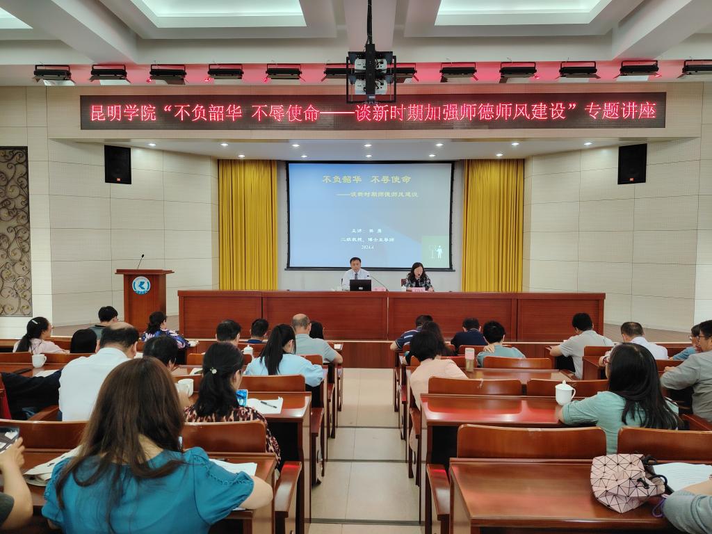 4月26日,学校举办师德师风专题讲座,邀请昆明理工大学马克思主义学院二级教授、博士生导师、云南省委宣讲团成员樊勇教授到校讲授。此次专题讲座为我校2024年师德师风专题教育活动之一,由教师工作部、校工会联合举办。全校各二级党组织书记、纪检委员,各单位主要负责人,全校各教师党支部书记、纪检委员及各分工会主席150余人参加。
