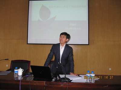 范建华主席分别从“国际生态文明建设的历程回溯、我国生态文明建设的理论探索和实践活动、云南争当生态文明建设排头兵为美丽中国做出独特贡献”三个方面,作了深入浅出的讲解。讲座上范主席带领大家边听边思考,为我校师生上了一堂精彩“生态文明”课。