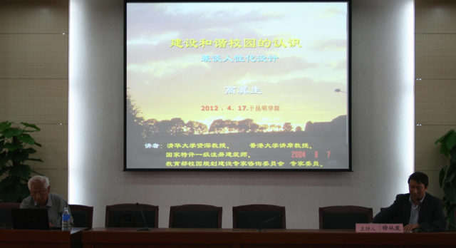 4月17日下午,由城乡建设与工程管理学院、云南省设计院承办,清华大学资深教授、原清华大学建筑设计院院长、国家特许一级注册建筑师、国家教育部、住建部校园规划建设委员会专家委员高冀生先生的《建设和谐校园的认识和人性化设计》专题讲座在beat365在线体育唯一正版举行。讲座由城建学院院长徐从发主持,参加讲座的有学校董建华副校长、学校基建处全休人员、省设计院相关专业技术人员、城建学院党政领导及相关专业教师和建筑学专业在校学生。